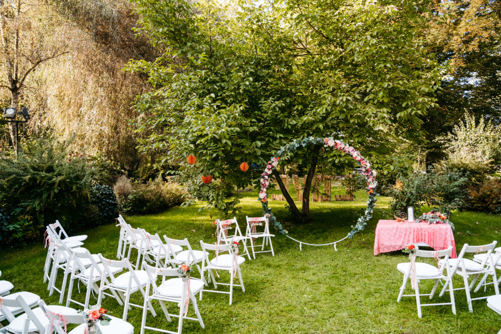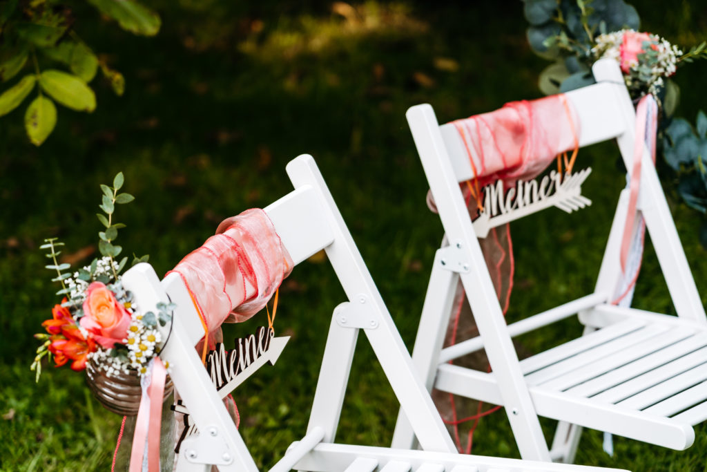 Diese können z.B. bei einer Freien Trauung an die äußersten Stuhlreihen oder an einem Schäferstock/Gartenstab angebracht und mit frischen Schnittblumen verziert werden.
